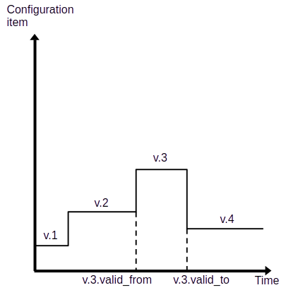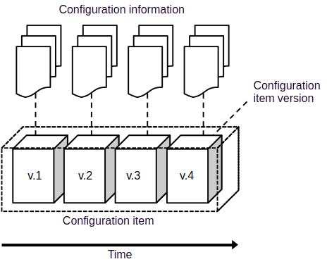 Configuration items usually evolve over time as the system is improved (except as-built configuration items, see below). The evolution of the configuration item is documented as a sequence of configuration item versions, each of which defines the configuration information during a defined period of time, the validity period.